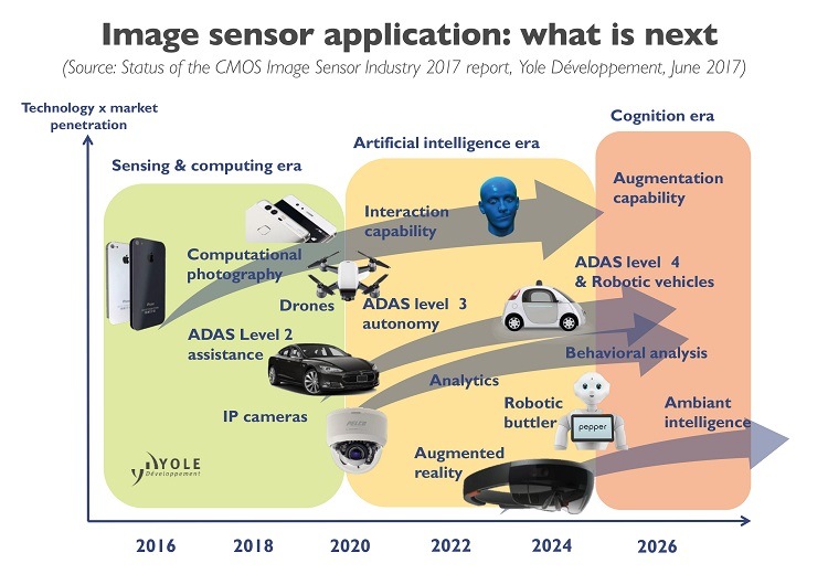 Pierre Cambou說:“從蘋果(Apple) iPhone誕生開啟智能手機(jī)時(shí)代后,至今已經(jīng)過了十年。從那時(shí)起,CMOS成像一直受惠于巨大的市場(chǎng)需求以及技術(shù)導(dǎo)向的環(huán)境。拍照與視頻是完全從新的使用案例、新的設(shè)備與新技術(shù)轉(zhuǎn)型而來的主要應(yīng)用。